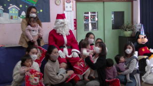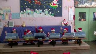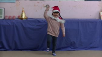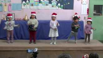 1組さんはピアニカの合奏とクリスマスソングのダンス。