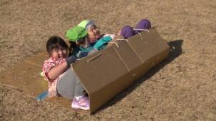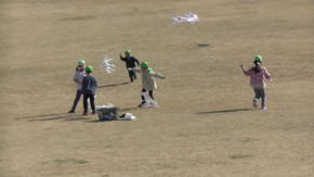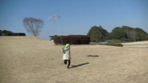 自分で作った凧、うまくあがったよ。