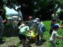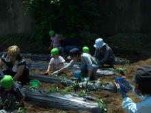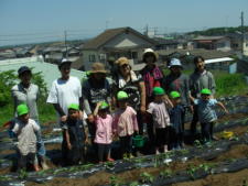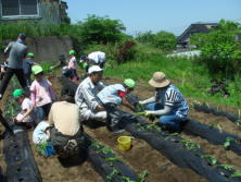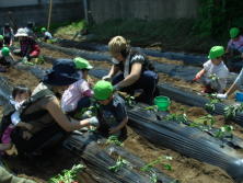 トマトの苗や、サツマイモの苗、お米の稲を植えて、育てています。