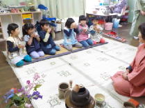 年長さんが、茶道体験です。正座はちょっとたいへん。
