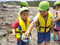 年長さんが、大洗海岸で ばっこ(小魚)釣りに挑戦です。