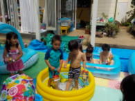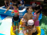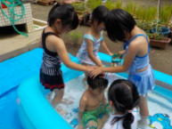 プールで水遊び、暑い日が続いた今年の夏でした。