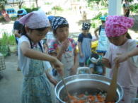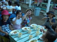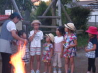 夕食のカレーライス作り、スイカ割り、キャンプファイヤー、花火、映画、、、