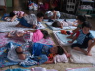年中さん、年長さんが、幼稚園にお泊りです。